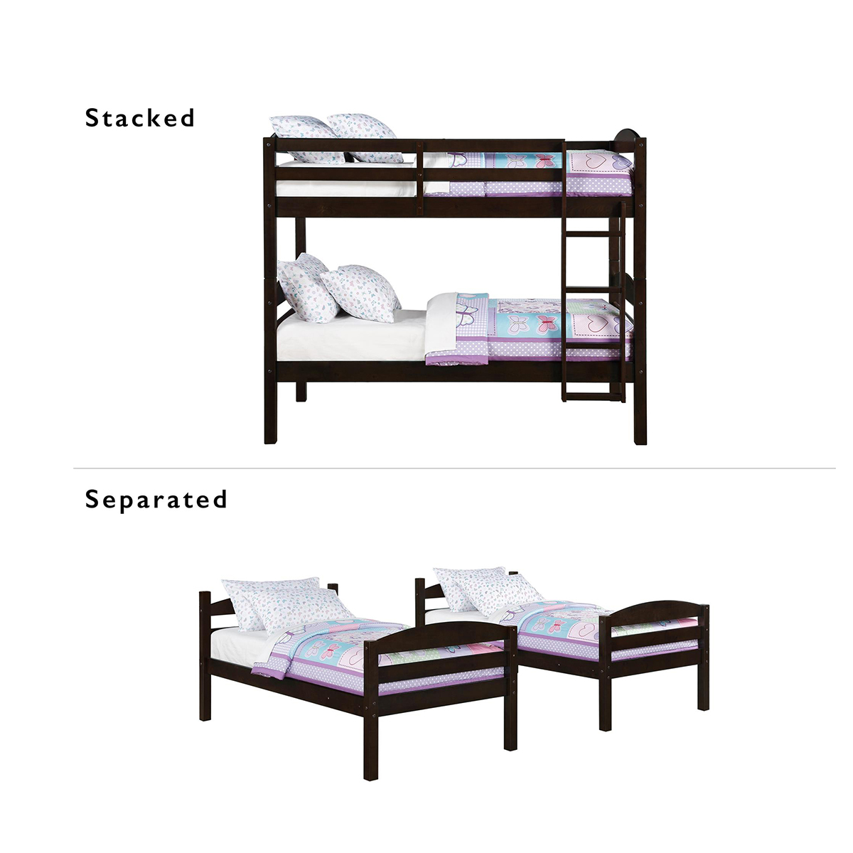Full Over Full Wood Bunk Bed for Children & Kids