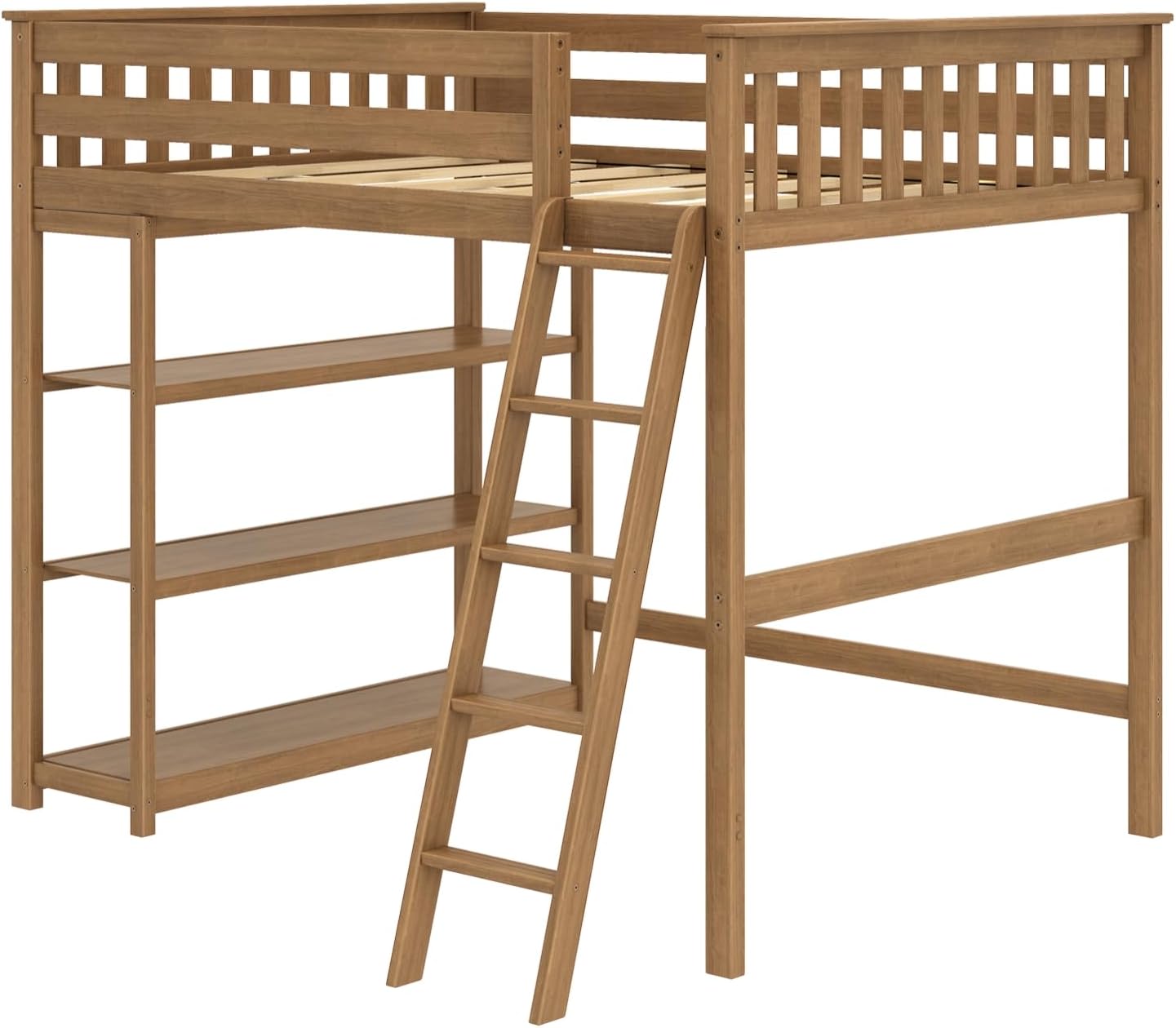 Pine Bed Solid Wood Twin-Size High Loft Bed with Bookcase Nature