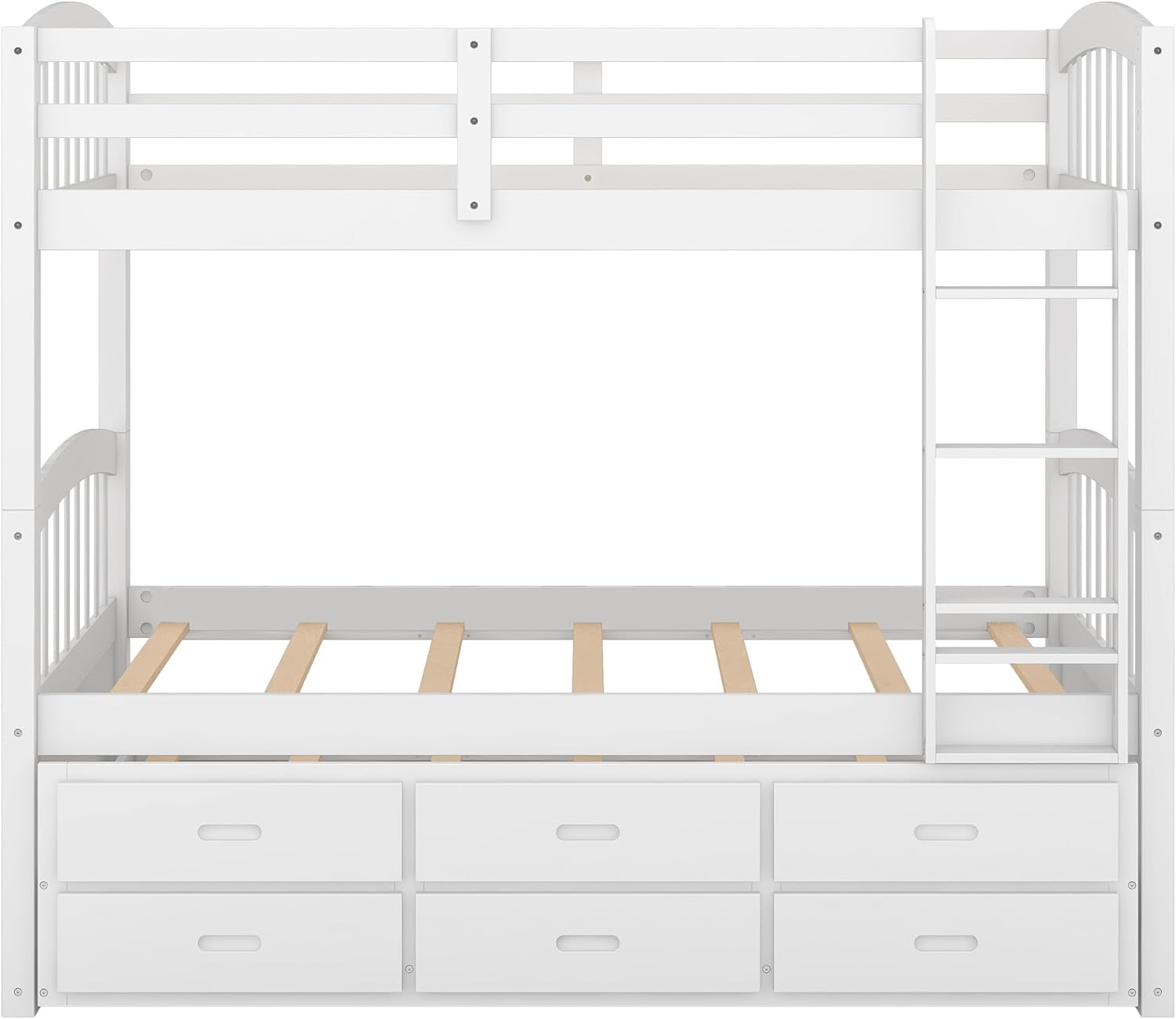 New Solid Wood Double Bunk Bed Twin Bunk Bed Kids Bed with Convertible Slide and Stairway White
